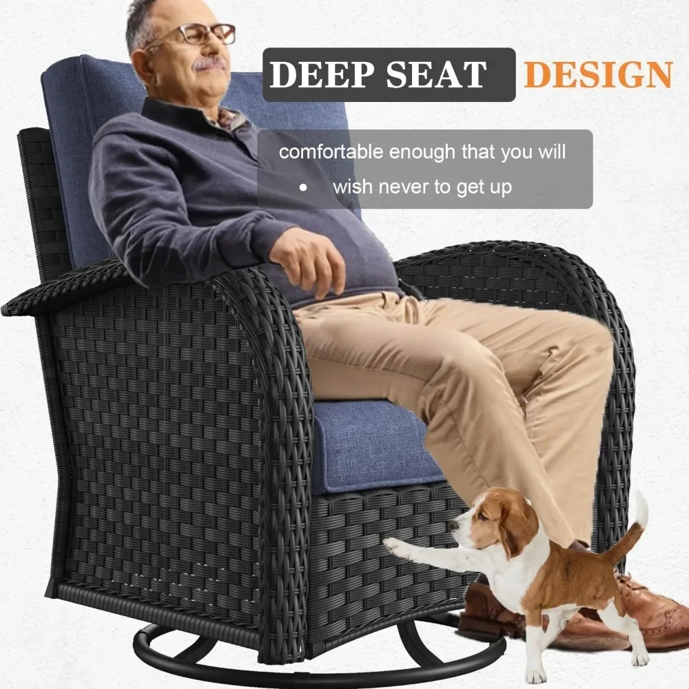 The set features high-back outdoor swivel rocking chairs, which offer both comfort and motion for ultimate relaxation. The swivel rocking design lets you move freely, while the high-back chairs ensure support for long periods of sitting. Whether you’re enjoying a good book or simply chatting with friends, these chairs provide unmatched comfort.