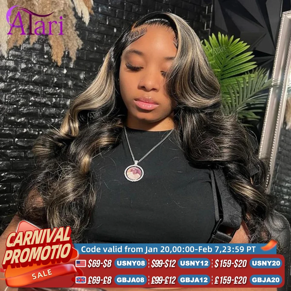 13×6 Lace Frontal Body Wave Human Hair Wig – Blonde 27 with Black Highlights, Pre-Plucked 13×4 Transparent Lace Front Wig for Women