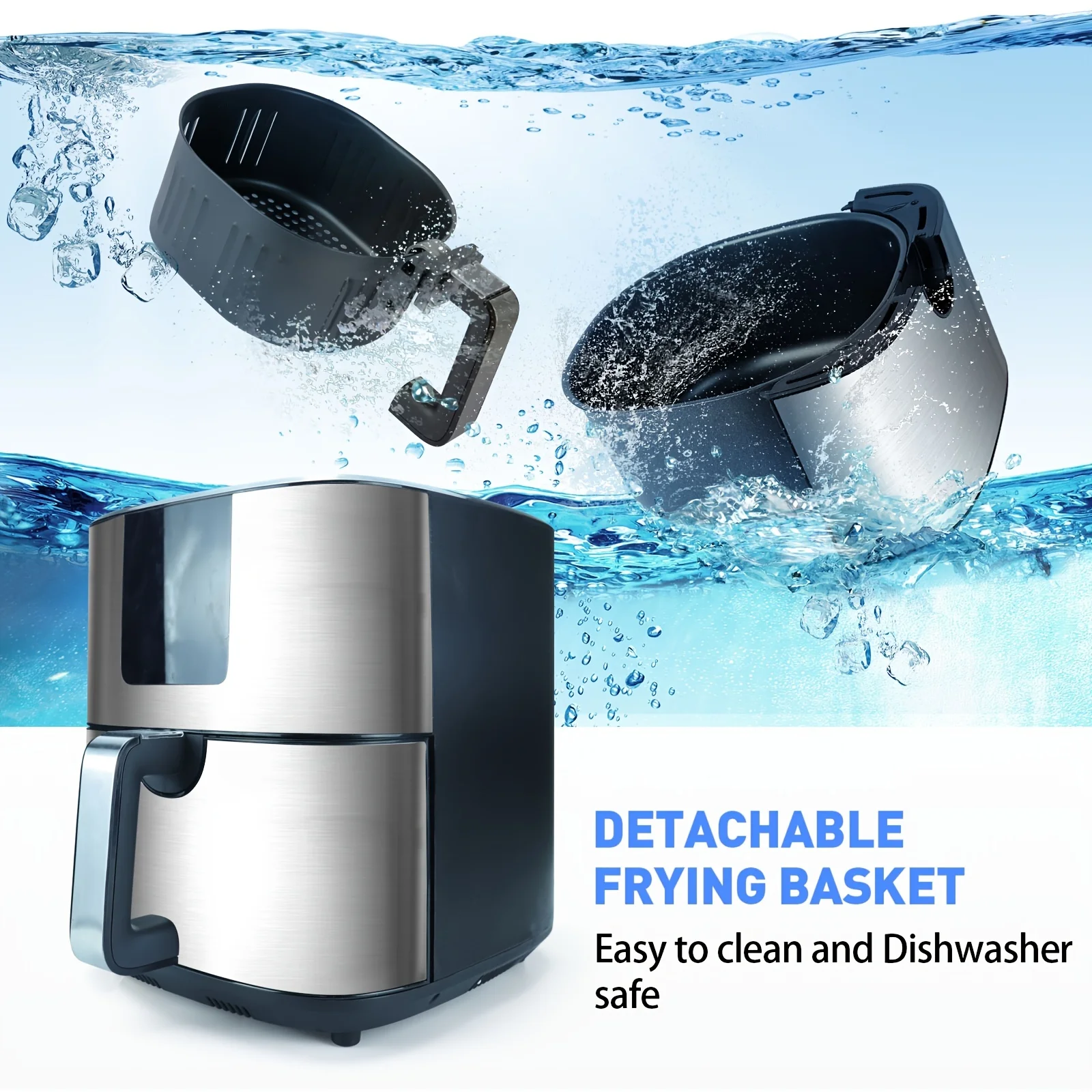 Quick & Easy Cleanup: The nonstick basket and removable parts make cleaning up after cooking quick and simple. Plus, the stainless steel finish ensures that your air fryer always looks sleek and polished.