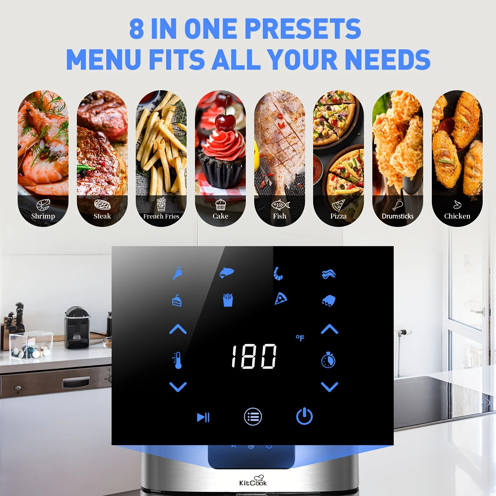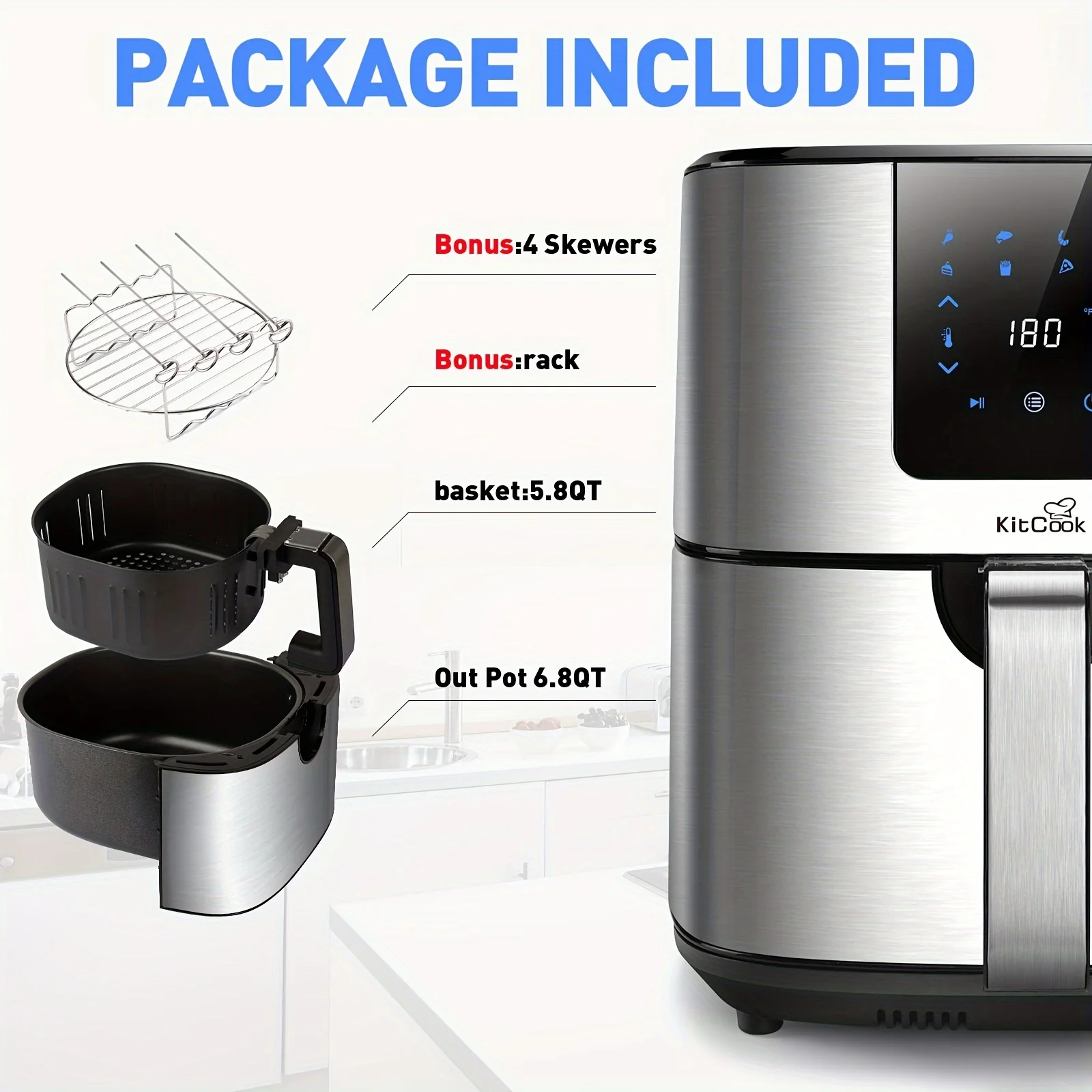 KitCook Large Air Fryer XL, 1500W 120V 6.8QT Stainless Steel Air Fryer Oven – Nonstick Basket, LED Touch Screen