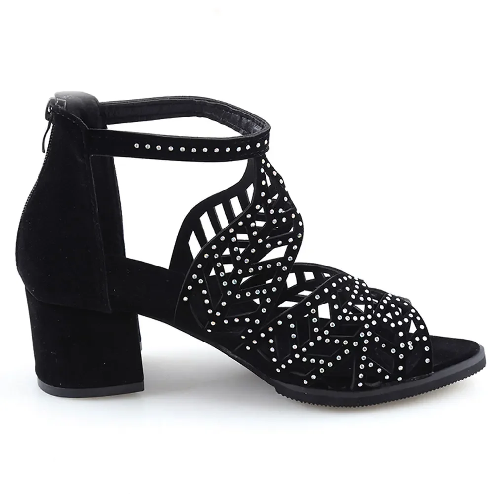 2022 New Style Women’s Summer Hollow Out Faux Leather Rhinestones Thick Heel Zipper Sandals (EUR 35-41)