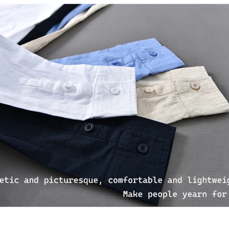 2025 Spring Summer Casual Cotton Linen Long Sleeve Shirt for Men | Lightweight & Breathable Solid Color Shirt (DC911)