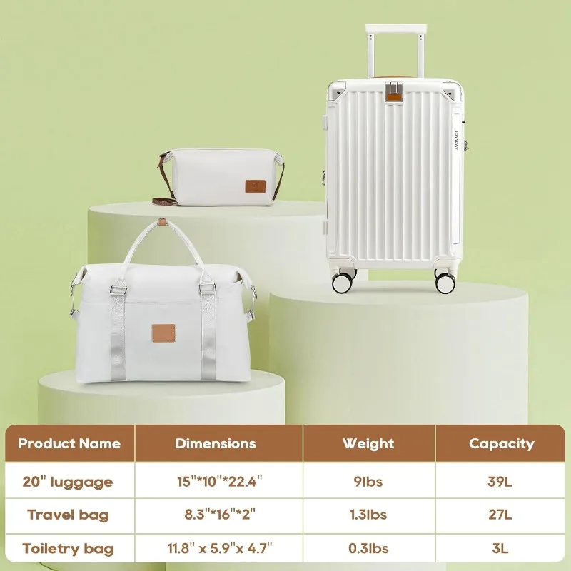 Durable & Lightweight: Constructed with strong yet lightweight materials, this carry-on suitcase is built to last through the rigors of travel while still being easy to carry. Its robust exterior protects your belongings from impact while keeping the overall weight low.