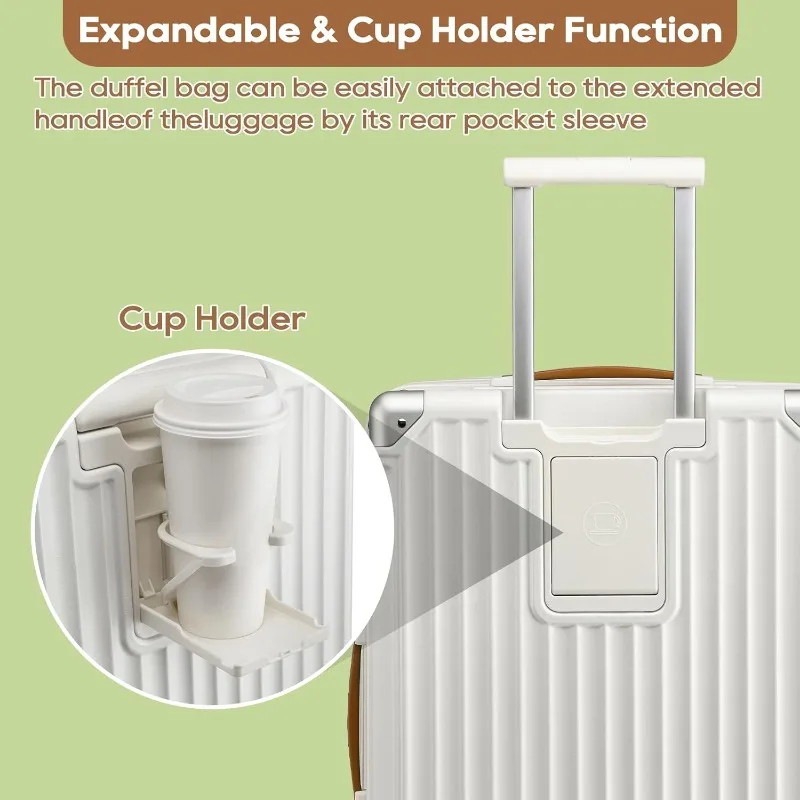 20in Carry On Luggage with Cup Holder & USB Port – Expandable Smart Suitcase with Anti-Slip Wheels and Handbag