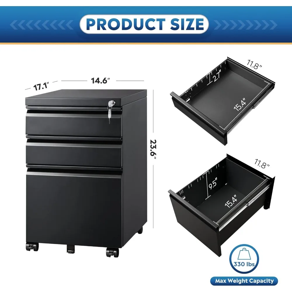 Fully assembled except for the wheels, this filing cabinet is ready to use right out of the box. Whether you’re outfitting a home office or upgrading your workspace, this file cabinet is the perfect blend of security, organization, and convenience.