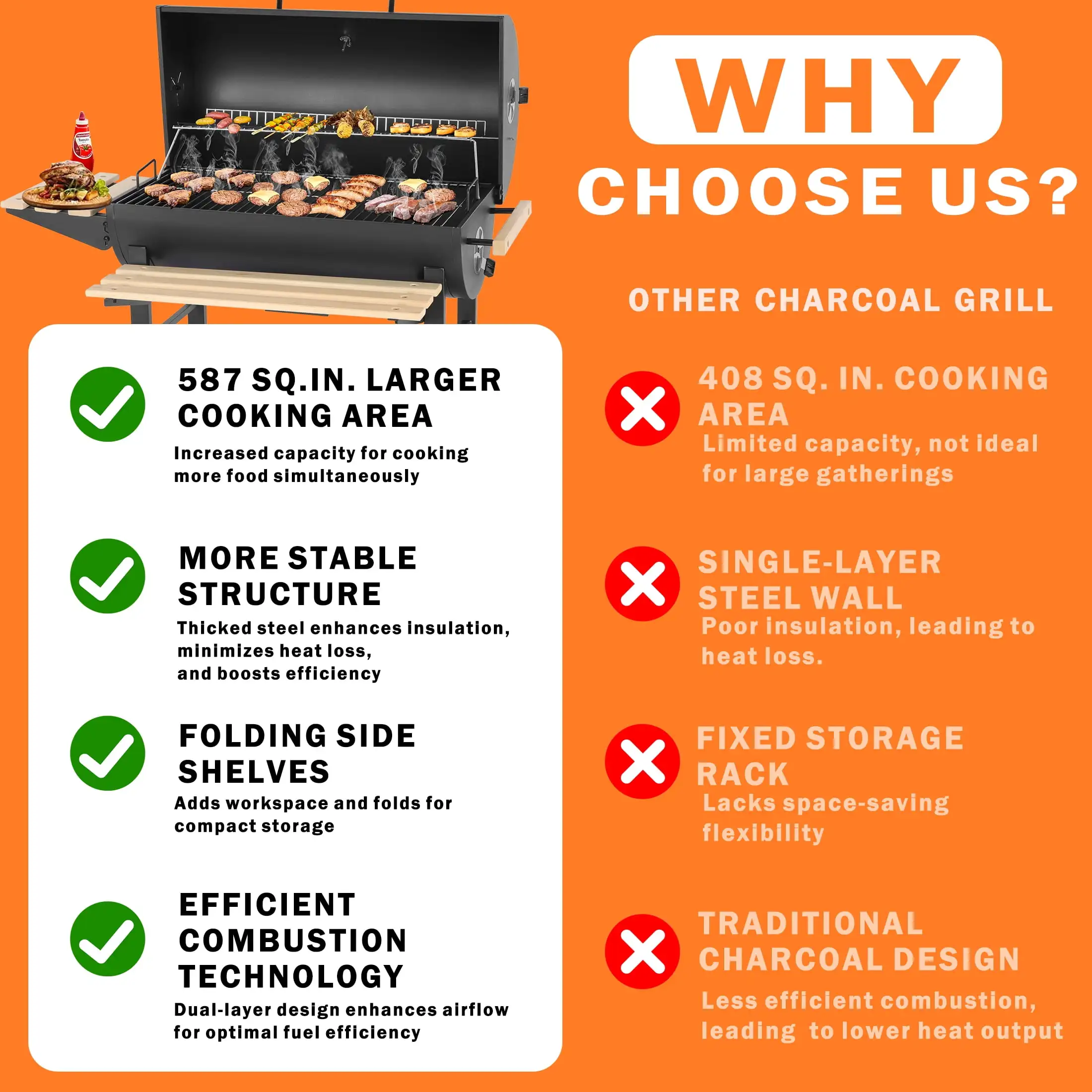 Adjustable charcoal tray – allows you to control heat for perfect grilling results