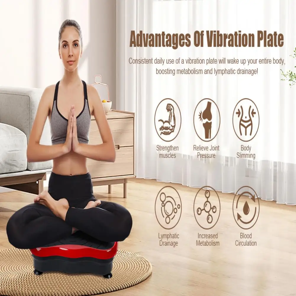 Step onto the vibrating plate and perform core exercises like leg slides or twists. The vibrations stimulate muscle contractions in your abs, making each movement more effective. The slider feature engages your entire core, working your obliques, lower abs, and upper abs for a complete workout.