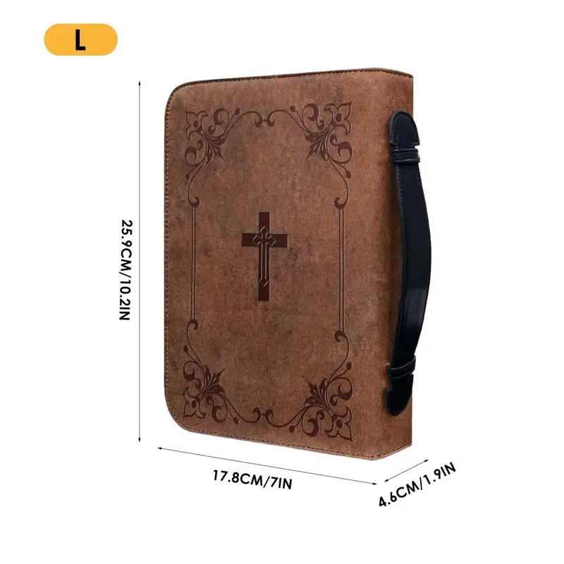 Featuring a smooth zippered closure, your Bible stays securely enclosed, while the comfortable handle makes it easy to carry to church, Bible study, or wherever your faith journey takes you. Its vintage-inspired design with refined stitching adds a timeless, sophisticated touch, making it a perfect accessory for personal use or as a thoughtful gift.