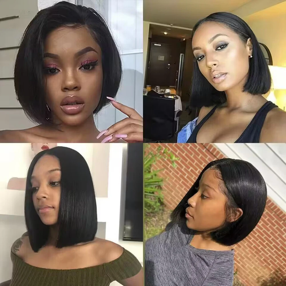 200% Density 13×4 Short Bob Straight Brazilian Remy Hair HD Transparent Lace Full Lace Frontal Wig – 100% Human Hair