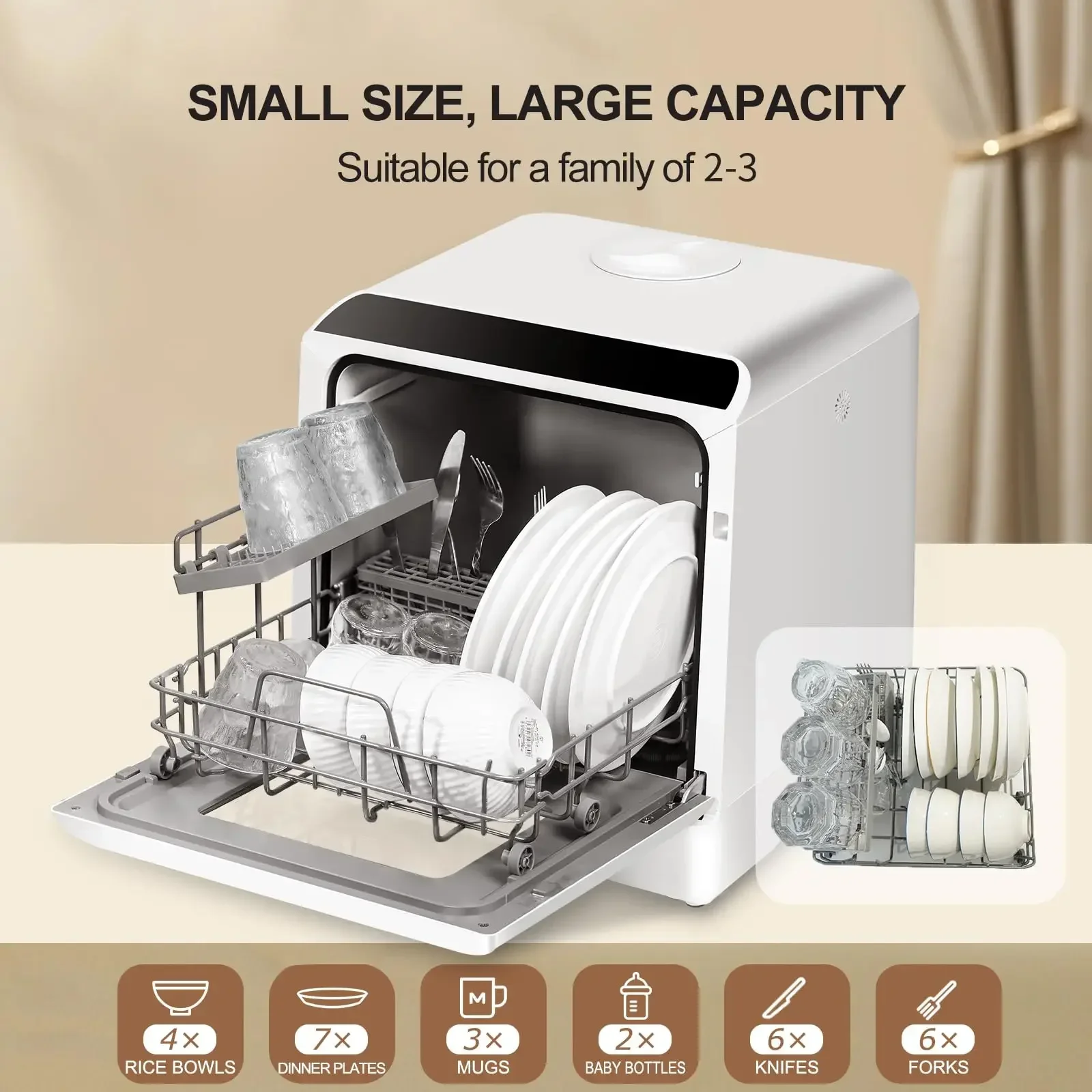 The ChuMaste Countertop Portable Dishwasher is the perfect solution for those seeking a compact and efficient dishwashing experience. Designed to fit comfortably on your countertop, this portable dishwasher is ideal for small spaces like apartments, dorms, or RVs. It features a built-in water tank, so there’s no need for a direct plumbing connection—simply fill the tank, and you’re ready to clean your dishes!