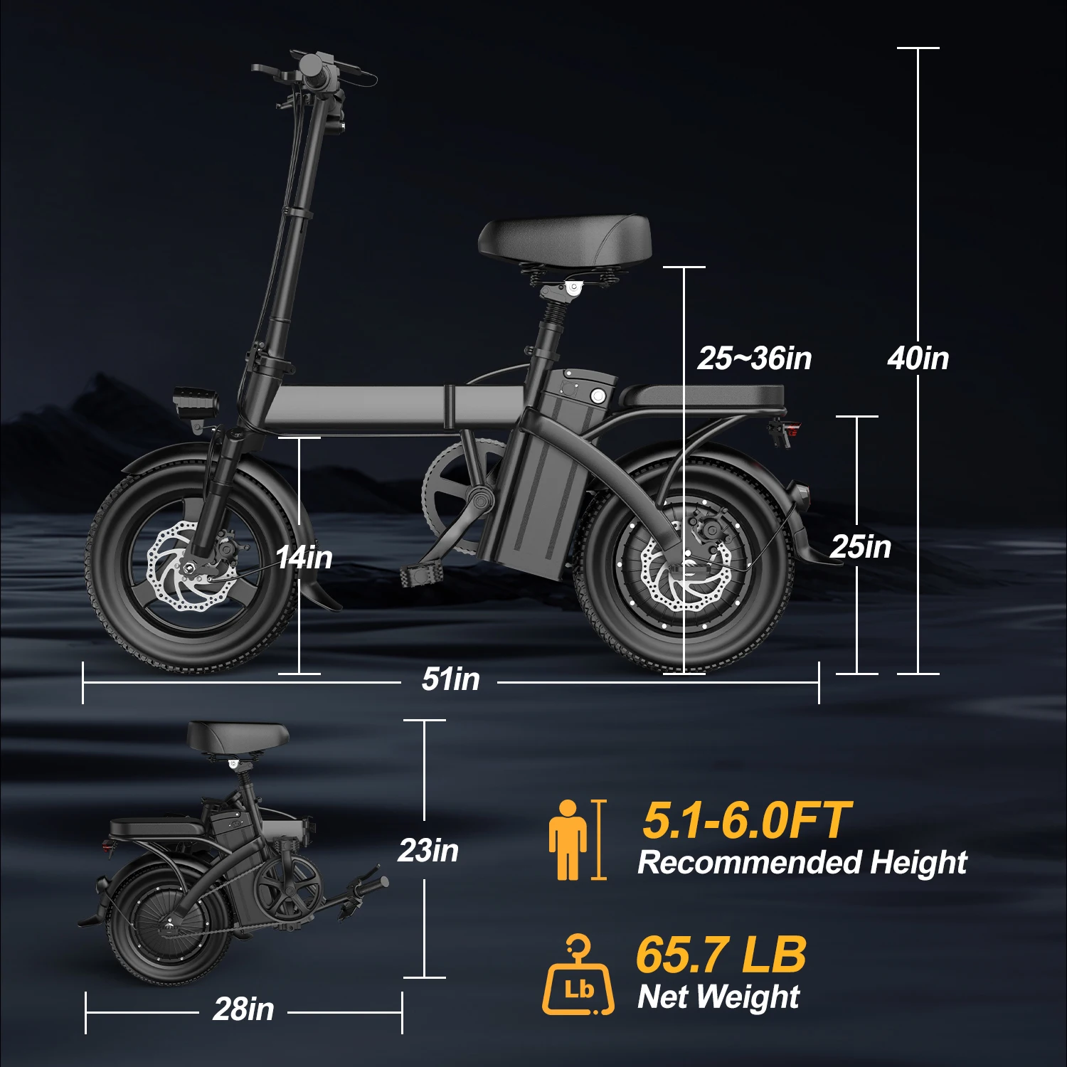 Perfect for city commuters and weekend adventurers alike, the Electric Bike for Adults provides an eco-friendly, hassle-free way to get around. With its foldable design, powerful motor, and long-lasting battery, this e-bike is perfect for anyone looking for a convenient, fun, and eco-conscious transportation solution.