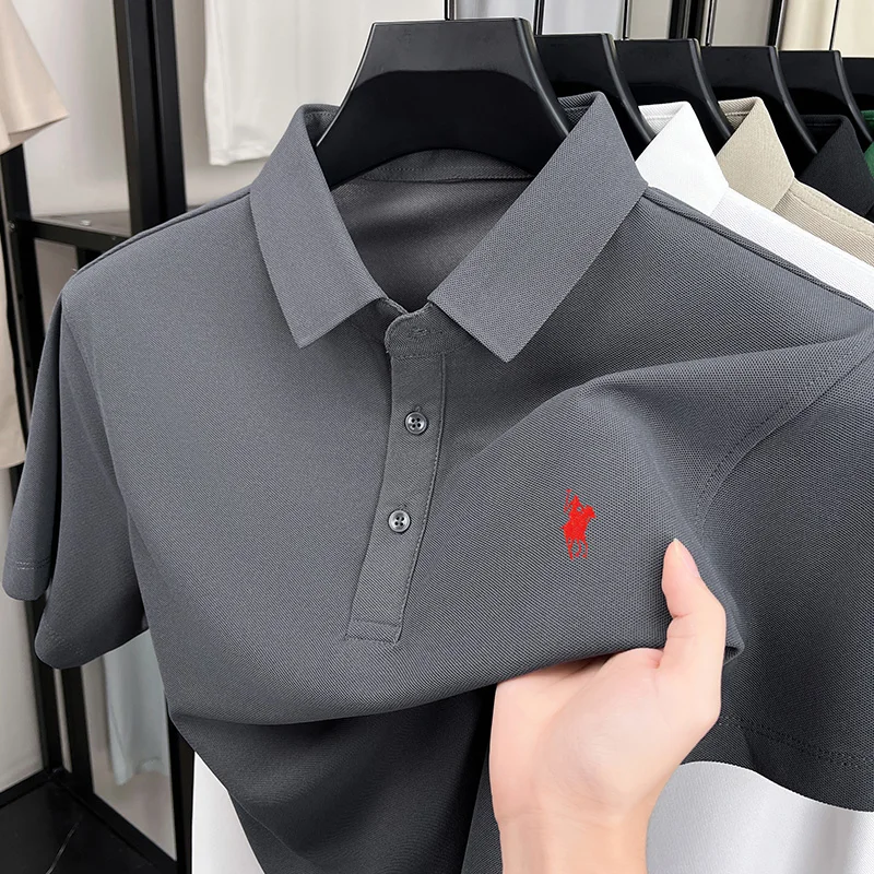 Men’s Fashion Designer Polo Shirt – Short Sleeve with Exquisite Pony Embroidery, High-End Summer Casual Business Tee