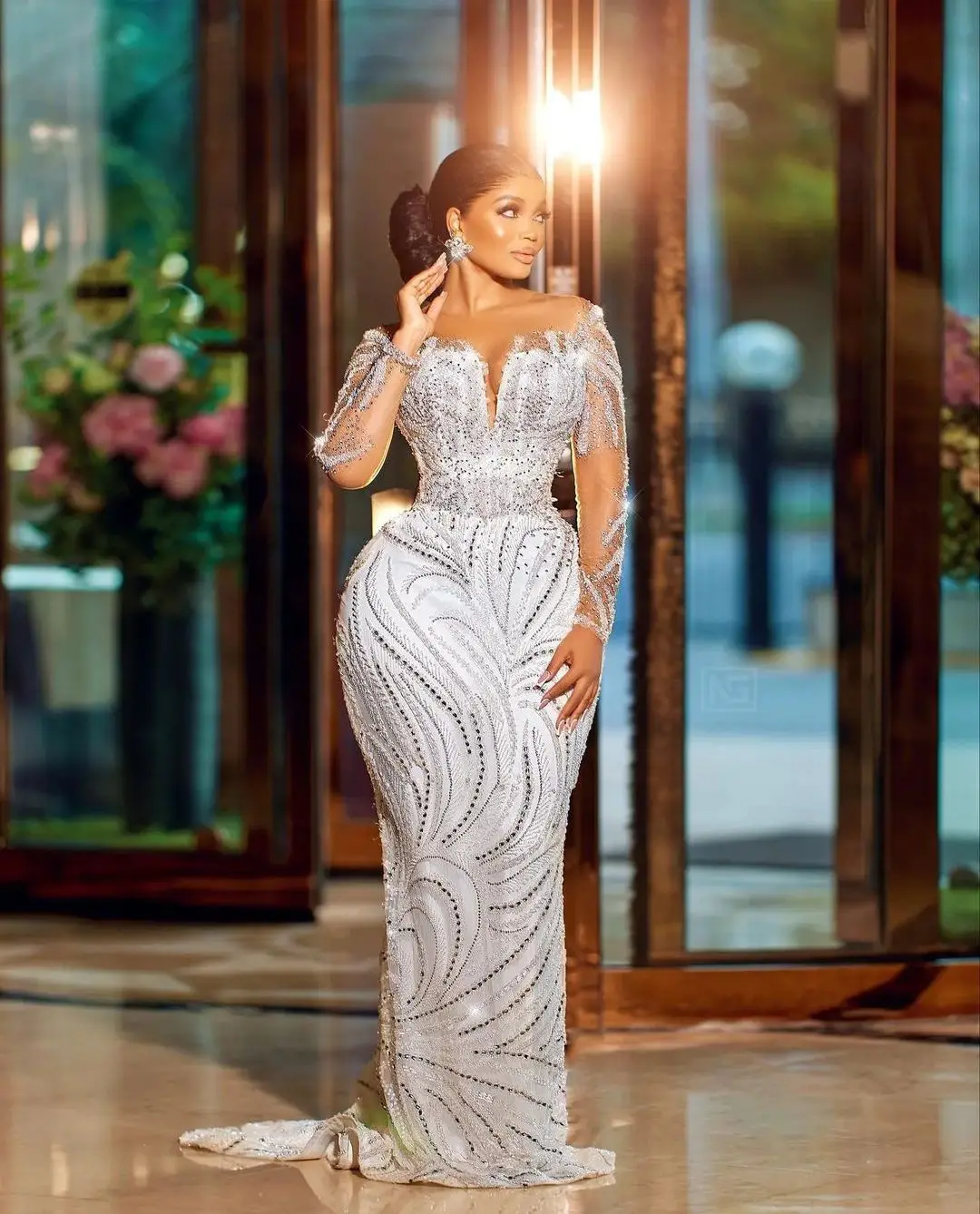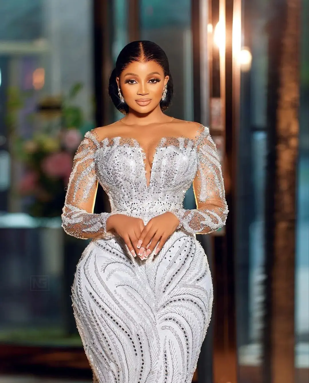 Turn heads on your special day with the Gorgeous Shine Mermaid Wedding Dress. This breathtaking gown combines the timeless elegance of mermaid styling with luxurious detailing, including delicate 3D beads, exquisite crystal lace, and voluminous pleated tulle. Designed to highlight your natural curves, this dress offers a stunning silhouette that hugs the body and flares out beautifully, creating a perfect balance of sophistication and drama.