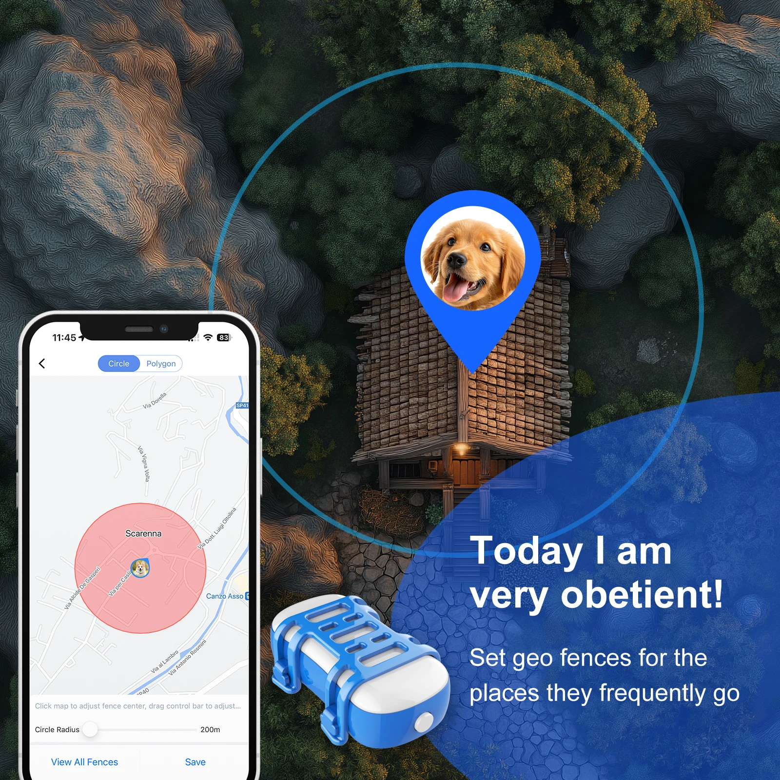 - Geofencing Alerts: Set up safe zones for your pet and receive instant notifications if they wander outside the boundaries.