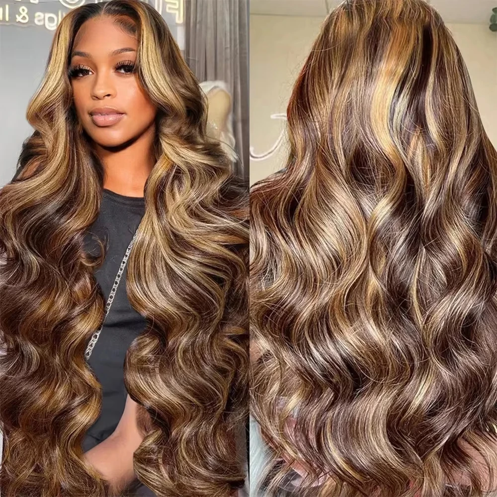 Highlight 200 Density Lace Front Wig – Human Hair Body Wave 30 Inch Colored Brazilian 13×6 HD Lace Frontal Wig for Women
