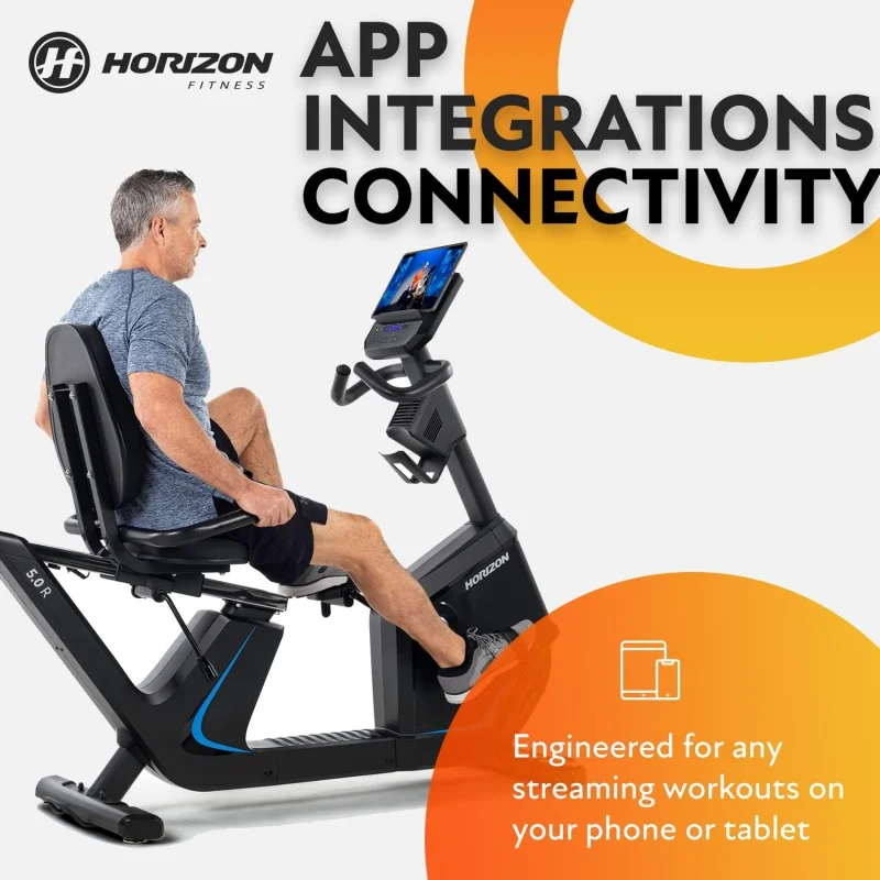 The Horizon Fitness 5.0R Recumbent Bike is the perfect combination of comfort, performance, and technology for an effective and enjoyable low-impact cardio workout. Designed with a smooth magnetic resistance system, it allows you to easily adjust the intensity of your workouts while providing a quiet and consistent cycling experience. The bike features a comfortable recumbent seat with lumbar support, ensuring excellent back support for longer sessions and a more relaxed riding posture. Its Bluetooth connectivity syncs with fitness apps, enabling you to track your progress and customize your workouts with ease. With an adjustable seat that caters to various body types and heights, this bike is perfect for users of all sizes. The LCD display provides real-time data on your workout stats, including time, speed, distance, calories burned, and heart rate. Whether you’re a beginner or a seasoned cyclist, the Horizon Fitness 5.0R is an ideal choice for home fitness, offering comfort and a quiet, low-impact workout experience.