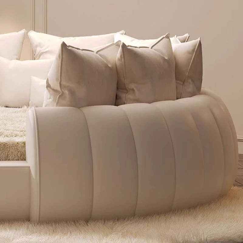 Transform your bedroom into a stunning retreat with our Leather Round Bed—a perfect fusion of modern elegance and luxurious design. Designed to make a bold statement, this bed features a sleek, round frame upholstered in premium cream leather, adding an air of sophistication and timeless beauty to any room.