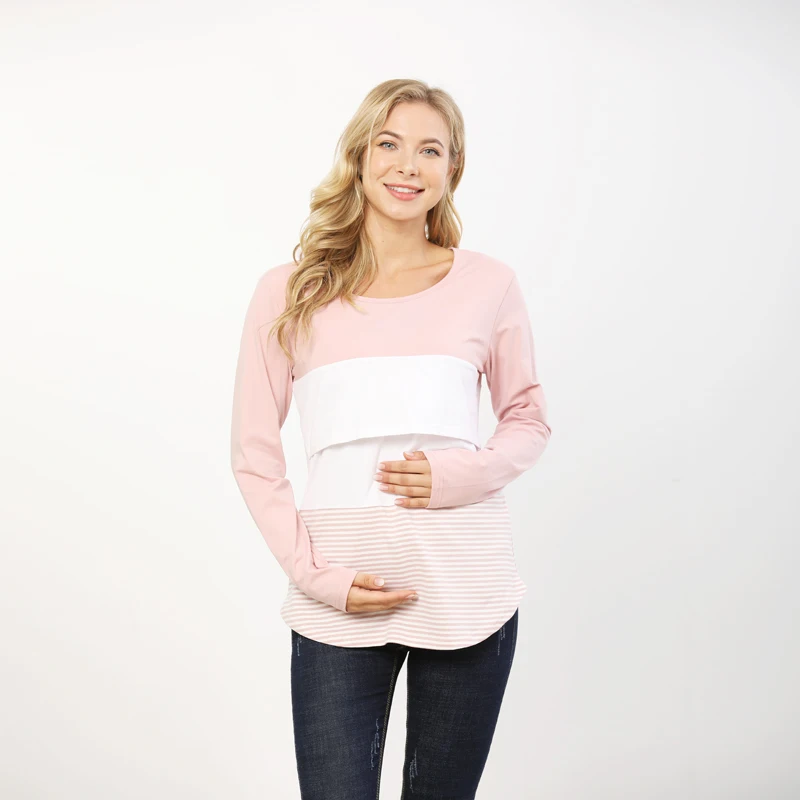 Long Sleeve Pregnancy Top – Maternity Stripe Nursing T-shirt for Pregnant Women, Spring & Autumn