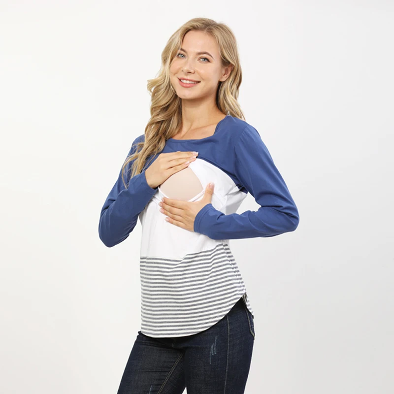Style Tags: Maternity top, breastfeeding clothes, nursing tee, long sleeve pregnancy top, striped maternity shirt, spring autumn maternity wear, nursing T-shirt for pregnant women