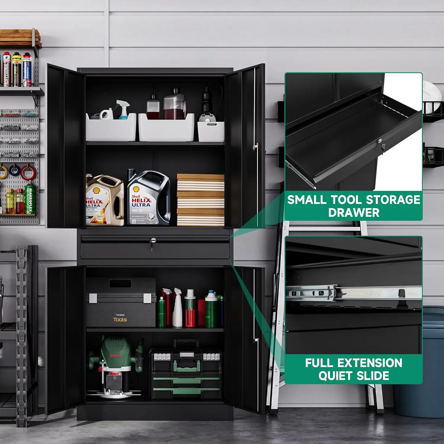 Get organized and secure your belongings with this Metal Garage Storage Cabinet—the perfect solution for all your storage needs.