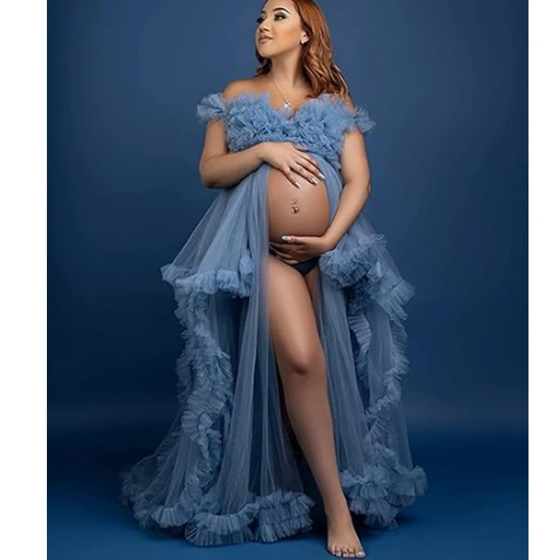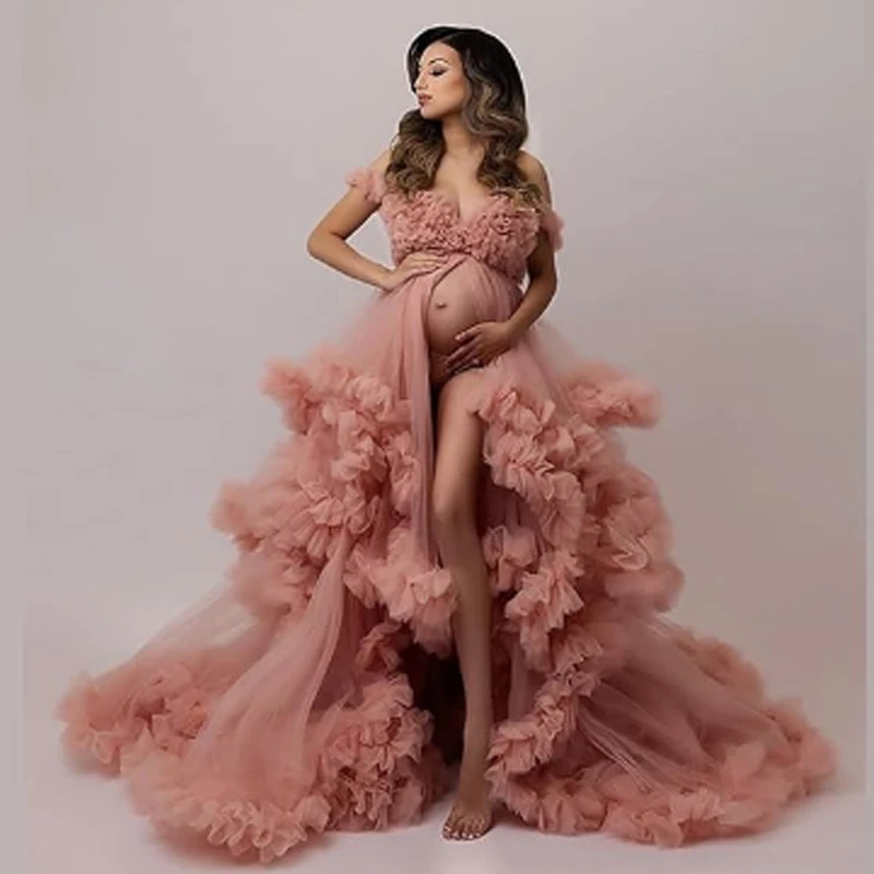 Puffy Ruffles Tulle Maternity Dress – Elegant Gown for Photoshoots, Baby Showers, and Special Occasions