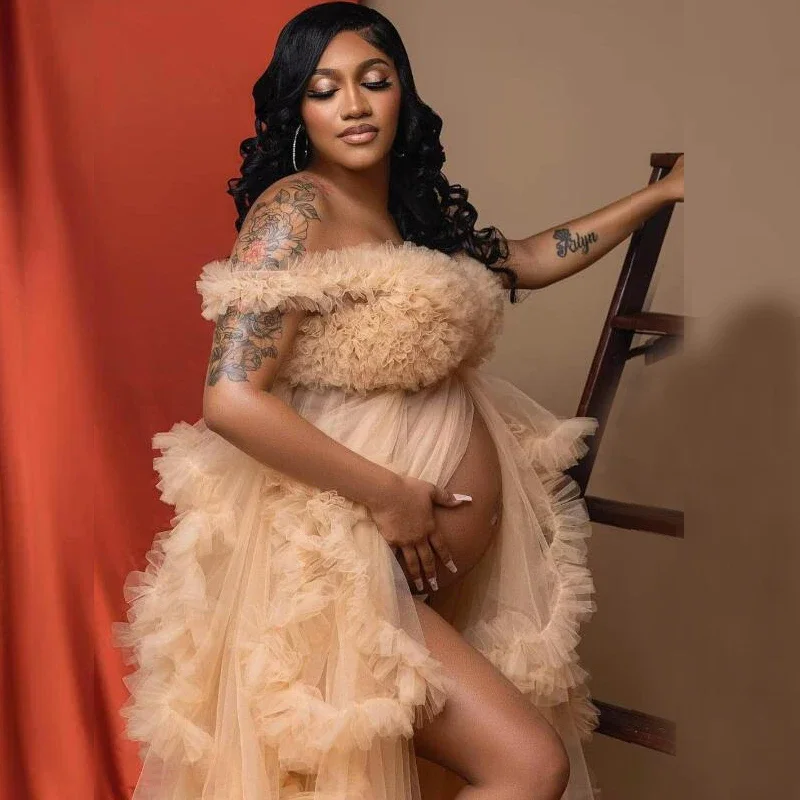Capture the magic of your pregnancy journey with this Puffy Ruffles Tulle Maternity Dress—the perfect choice for those who want to shine during their special celebrations.