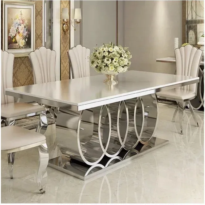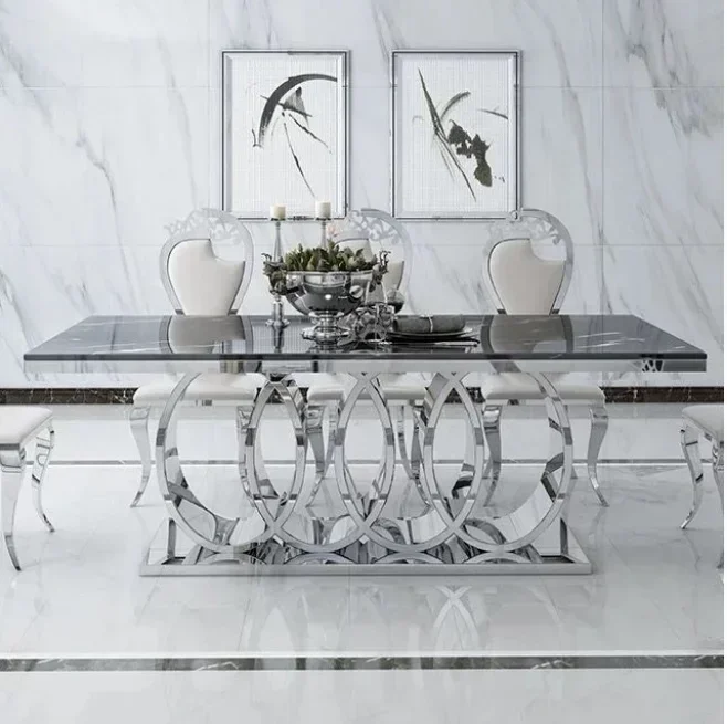 Stainless Steel Dining Table Set with Marble Tops – Modern Luxury for Every Occasion
