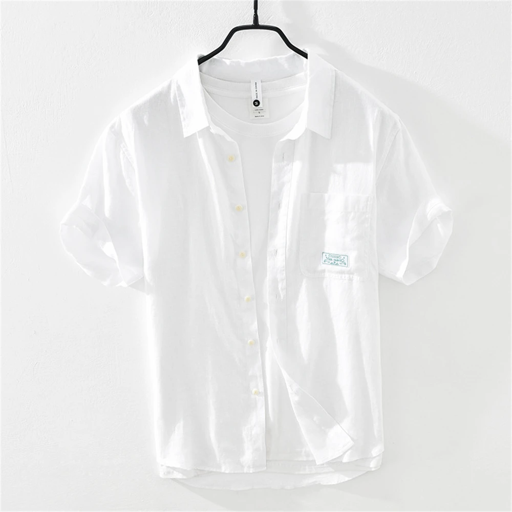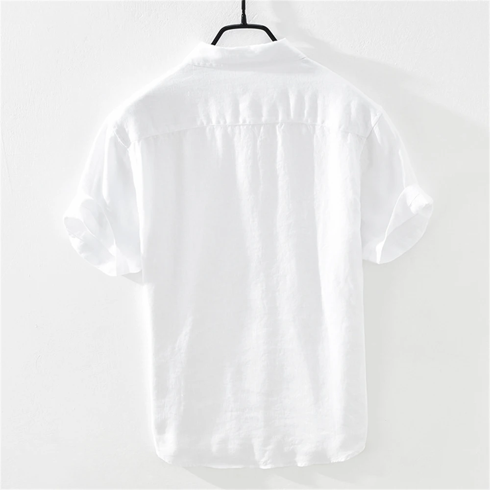 Men’s Summer Short Sleeve Linen Shirt – Solid Color, Loose Fit, Lightweight Casual Top