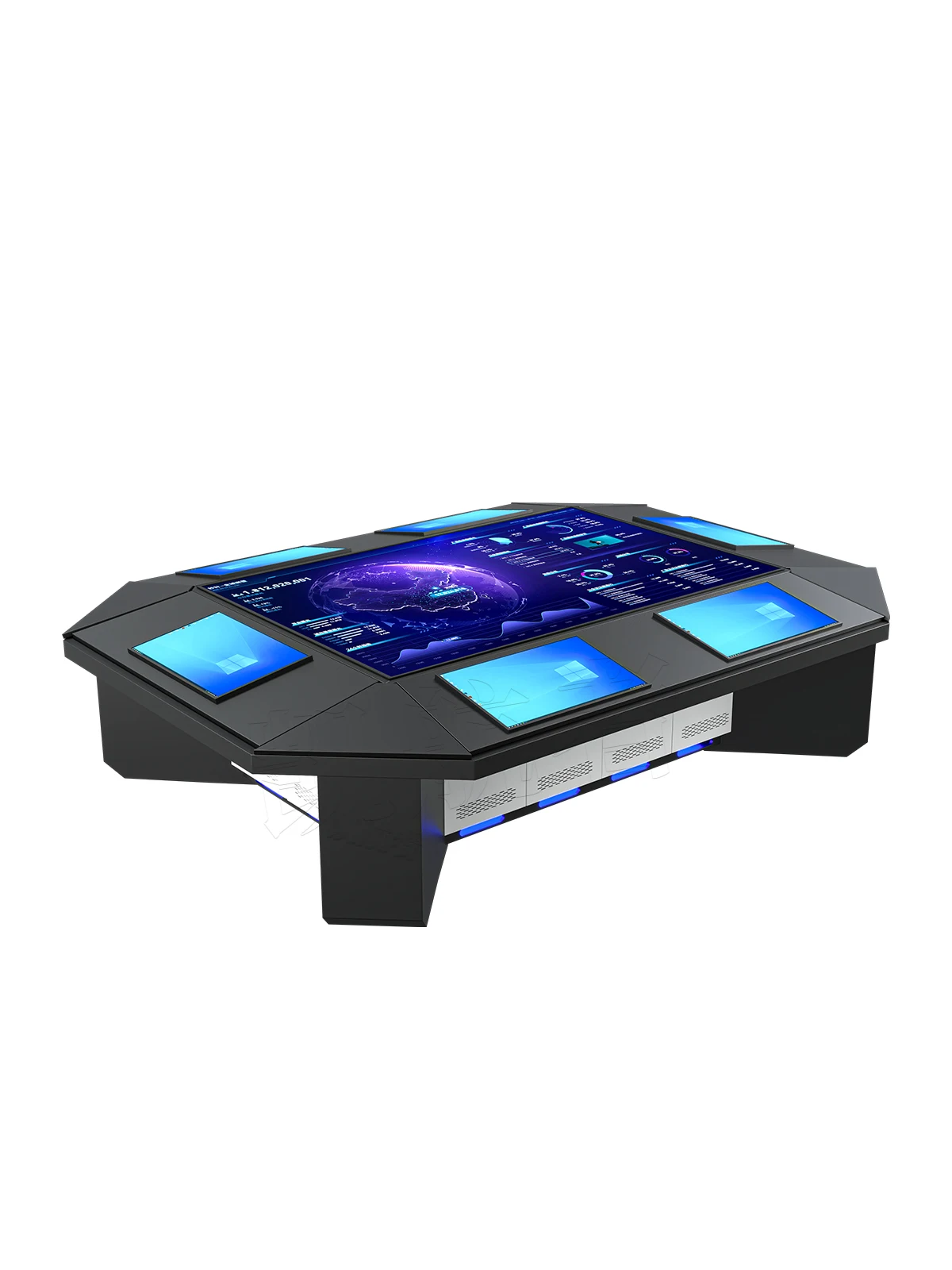 • Multi-User Interaction: Designed for team-based strategy development, this system allows multiple operators to interact simultaneously. From commanders to operators, the table supports collaborative decision-making, enabling different users to manipulate and update the simulation in real-time.