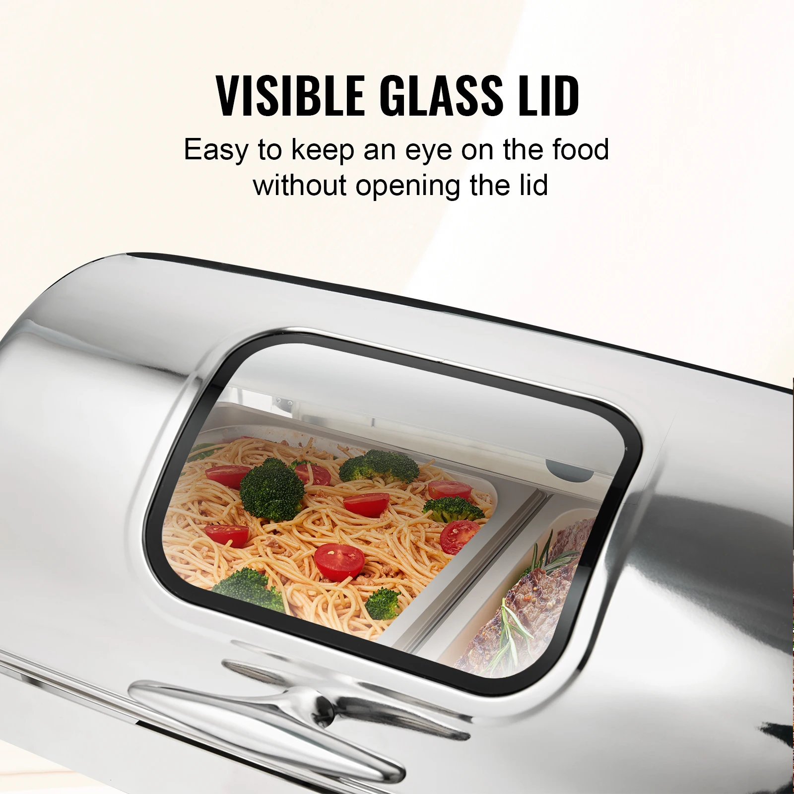 VEVOR 9QT Roll-Top Chafing Dish Buffet Set – Stainless Steel Chafer with Half Pans, Lid, and Fuel Holder